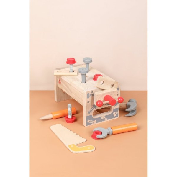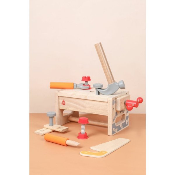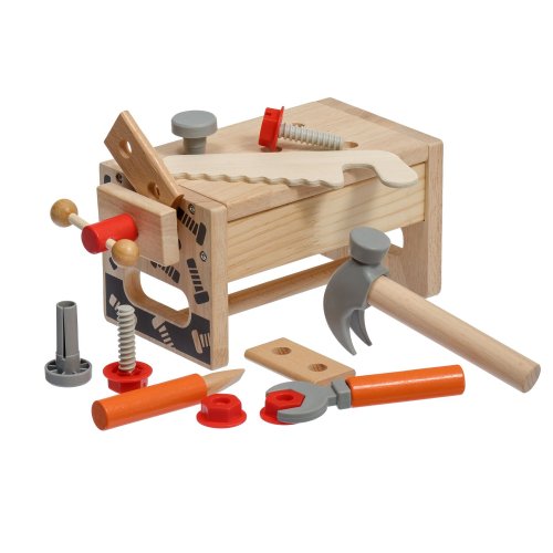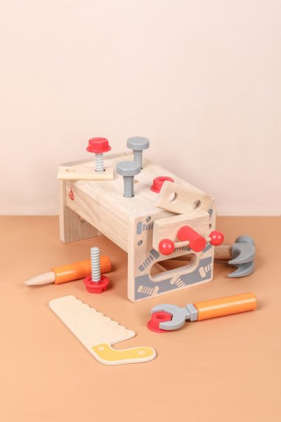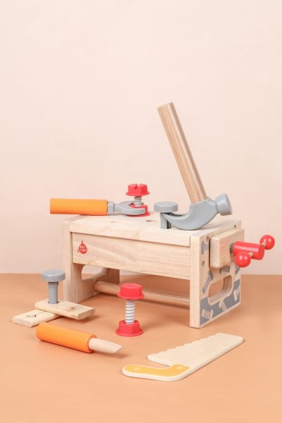 Děti se seznámí s nářadím a naučí se, jak jej používat v praxi. Mohou zatloukat, šroubovat, řezat pilkou nebo upevňovat dřevěné kousky pomocí šroubů a matek. Hra na malého tesaře pomáhá rozvíjet koordinaci ruky a oka, představivost i logické myšlení. Po hře vše snadno uložíte do bedýnky, která se během chvíle změní zpět na ponk.