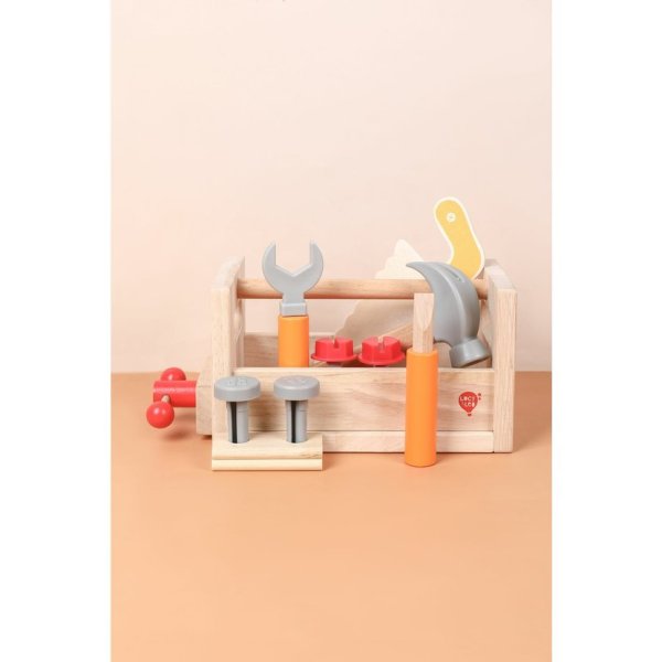 Lucy & Leo 182 Velký tesař je dřevěná sada nářadí s ponkem, která malým dětem přibližuje svět řemesel zábavnou formou. Obsahuje 15 dílů dětského nářadí, které lze uklidit do praktické bedýnky. Po otočení se bedýnka promění v pracovní ponk, u kterého si děti mohou hrát na opravdové řemeslníky.