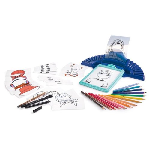 Sada obsahuje:, * 1 podsvětlenou kreslicí podložku, * 5 čistých archů, * 2 archy s tvary obličeje, * 2 archy s obrysy těla, * 10 archů s tvary vlasů, * 6 archů s tvary očí, * 4 archy s tvary úst, * 12 archů s módními doplňky, * 14 pastelek, * 1 grafitovou tužku, * 1 liner, * 1 fixu, Tablet je na 3 kusy LR03/AAA baterie (nejsou součástí balení).
