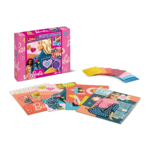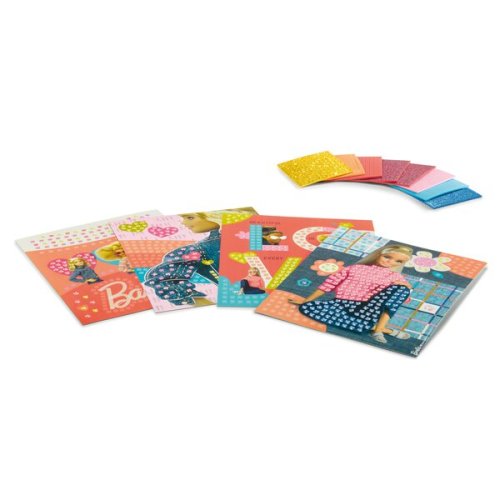 Sada obsahuje:, * 4 karty s motivy Barbie, * 8 archů se samolepicími pěnovými čtverečky