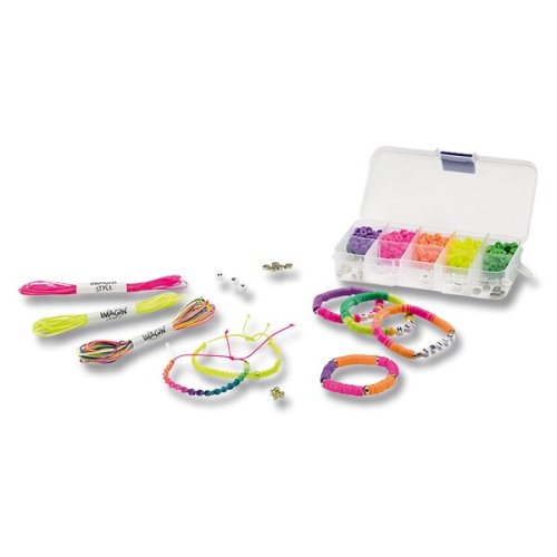 Náramek si můžete vyrobit dvěma různými technikami - tkaním a navlékáním. Tkaní je snadné díky přiloženému manuálu a jednoduché technice. Navlékání je ještě snadnější pouze, za pomoci barevných nití, korálků a kovových děličů. Kombinací nití, korálků a děličů vytvoříte 14 trendy náramků., Sada obsahuje:, * 3 barevné neelastické nitě (3 x 450 cm), * 1 bílou elastickou niť (1 x 300 cm), * Heishi barevné korálky (neonově žluté, neonově oranžové, neonově růžové, zelené, fialové: 5 x 190 ks), * stříbrné kovové děliče (15 ks), * stříbrné kulaté korálky (20 ks), * korálky s písmenky ke složení textu (10 ks), * papírový box pro hotové náramky, * návod k použití, Maped Creativ je kolekce kreativních sad francouzské značky Maped, tradičního výrobce kvalitních školních a kancelářských potřeb. Kolekce Maped Creativ v několika řadách nabízí, kreativní vyžití pro děti od 1 roku - edice EARLY AGE, až do věku 6+ - edice BOARD ACTIVITIES. Edice MINIBOX je vhodným dárkem při každé návštěvě rodin s dětmi. Edice COLOR PLAY pro, děti od 4 let zas posouvá hranice kreativního tvoření k dalšímu hraní.
