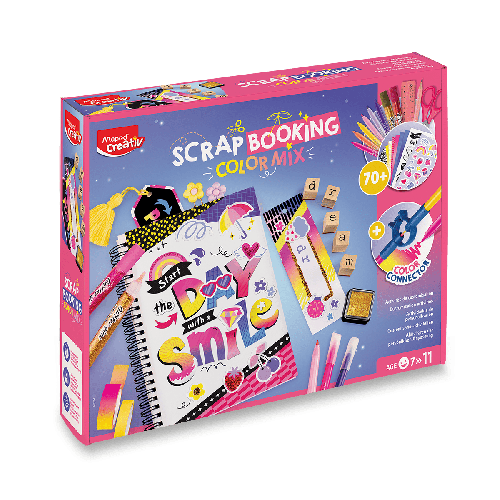 Sada obsahuje:, * 1 kroužkový blok, * 220+ samolepek, * 24 archů s různými motivy, * 10+3 fixy, * 3 dekorační lepidla se třpytkami v tubě, * 4 dekorační lepící pásky, * 3 ozdobné kancelářské sponky, * 5 razítek, * 3 razítkovací polštářky, * nůžky, * pravítko, * liner, * grafitová tužka, * konektor fixů pro vytvoření vícebarevného efektu, * doplňky