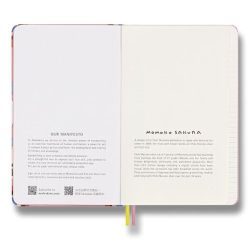 Pevné látkové desky jsou obepnuté pružnou páskou proti samovolnému otevírání. Zápisník vybaven kapsou na vizitky a drobnosti, která je vyrobena z tkaniny a kartonu, textilní záložkou,, listem tématických samolepek, obálkou s blahopřáním a letákem s historií MOLESKINE., Zápisník Moleskine Sakura - tvrdé desky, linkovaný, Gramáž papíru 100 g/m², neobsahuje kyseliny. Papír v slonovinové barvě, vyroben z FSC certifikovaného dřeva., Rozměr: 13 x 21 cm, 88 listů, linkovaný, Zápisník obsahuje list samolepek s tematickými motivy., Zápisník Moleskine Sakura - tvrdé desky, čistý, Gramáž papíru 100 g/m², neobsahuje kyseliny. Papír v slonovinové barvě, vyroben z FSC certifikovaného dřeva., Rozměr: 13 x 21 cm, 88 listů, čistý, Zápisník obsahuje list samolepek s tematickými motivy., TEXTILNÍ POUZDRO SAKURA, Textilní pouzdro s motivy děl japonské manga umělkyně Mokoko Sakura., Rozměr: 27 x 18, 2 cm, O ZNAČCE MOLESKINE:, Příběh značky MOLESKINE se začal psát již v 19. století ve Francii, kdy vznikl produkt s velkou tradicí. Zápisníky MOLESKINE si oblíbili významní umělci a myslitelé jako Vincent van, Gogh, Pablo Picasso či Ernest Hemingway. Dnes je značka Moleskine synonymem pro kulturu, cestování, kreativitu a osobní identitu, a to jak v reálném světě, tak i ve světě digitálním., MOLESKINE je kreativním a nápaditým partnerem pro dnešní dobu.,