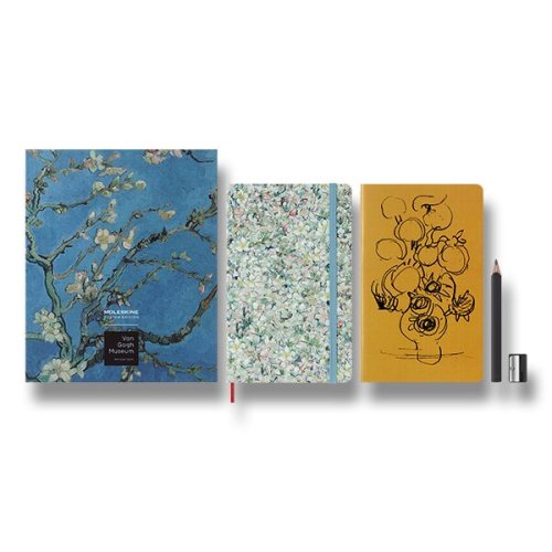 Sada obsahuje:, Sešit Moleskine Cahier Van Gogh - měkké desky, Rozměr: 13 x 21 cm, 52 listů, linkovaný, gramáž papíru 70 g/m², • kapsa na vizitky a drobnosti, • neobsahuje kyseliny, • textilní záložka , • papír má slonovinovou barvu, • papír vyroben z FSC certifikovaného dřeva, Sketchbook Moleskine Van Gogh - tvrdé desky, Rozměr: 13 x 21 cm, 88 listů, nelinkovaný, gramáž papíru 165 g/m², • kapsa na vizitky a drobnosti , • neobsahuje kyseliny, • papír má slonovinovou barvu, • papír vyroben z FSC certifikovaného dřeva, Dodáváno v elegantním kartonovém dárkovém boxu.