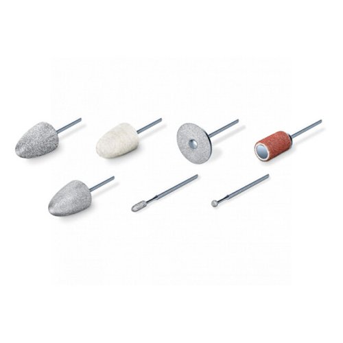 safírové kolečko, jemnozrnný safírový kužel, hrubozrnný safírový kužel, plstěný kužel, řezačka ve tvaru plamene, řezačka kulatého safíru, nástavec pro nástavce na brusný papír, včetně 10 jednorázových nástavců vyrobených ze smirkového papíru.