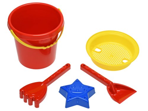 Sada na písek je určená pro všechny malé rošťáky, kteří se rádi hrají na pískovišti. Sada obsahuje sítko, lopatku, hrabičky a bábovičku. Vhodné pro děti od 10 měsíců.