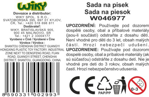 Sada na písek 6 ks. Součástí kyblík, lopatka, hrabičky, 3 formičky.
