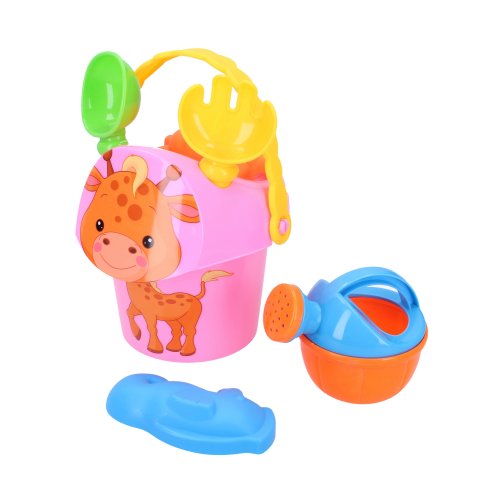 kyblík s obrázkem zvířátka (15 cm) lopatka hrabičky konvička 2 formičky Doporučený věk: od 3 let