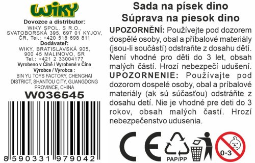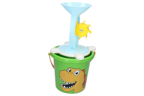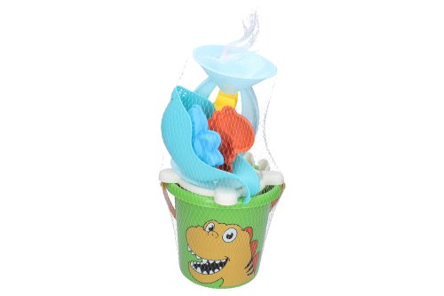 Sada na písek dino 32cm. Rozměry 15x15x15 cm. Sada obsahuje kyblík, 2 formičky, cedník, hraběčky, lopatku, mlýnek, nálevku.