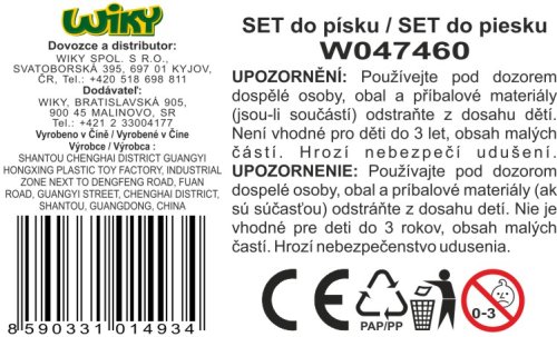 Sada na písek kolečko. Rozměry kolečka 59x27x22 cm. Obsah balení - kolečko, kyblík, konvička, formička, lopatka, hrabičky.