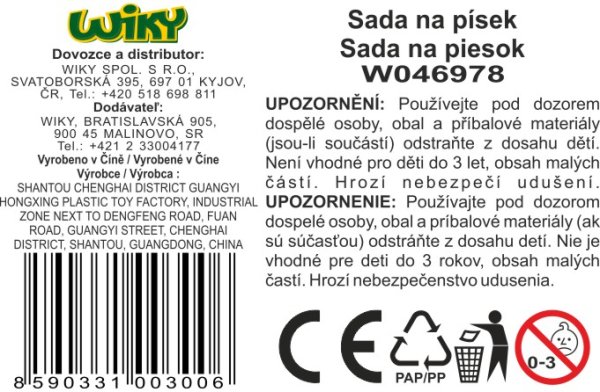 Sada na písek mlýnek 10 ks. Rozměry 17x11x23 cm. Součástí mlýnek, 2 lopatky, hrabičky, sítko, formičky.