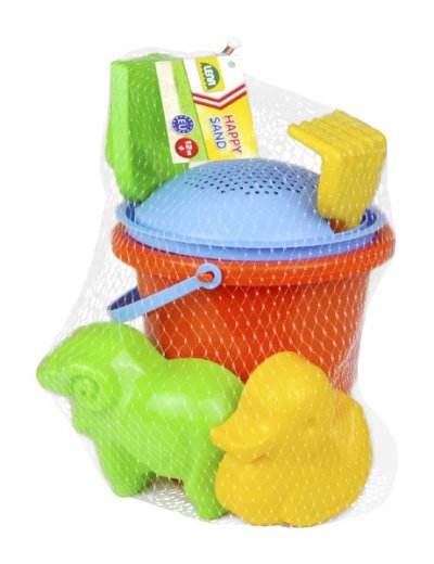 Kyblík o průměru 18cm / 2l, sítko, hrábě, lopatka, 3x formička