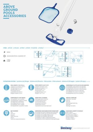 K docílení křišťálově čisté vody ve Vašem bazénu budete potřebovat příslušenství k odstraňování hrubých nečistot, a k tomu je ideální bazénový vysavač. Bazénový vysavač AQUA - obsah sady: tyč 279 cm, 3 adaptéry, odnímatelný znovupoužitelný sáček na nečistoty, síťka na nečistoty s extra odolnou síťovinou, extra dlouhá 6m hadice (průměr 32mm) Rozměry: 112 x 31,5 x 11,5 cm