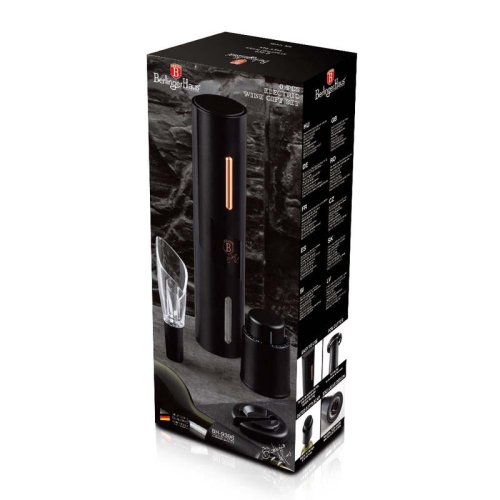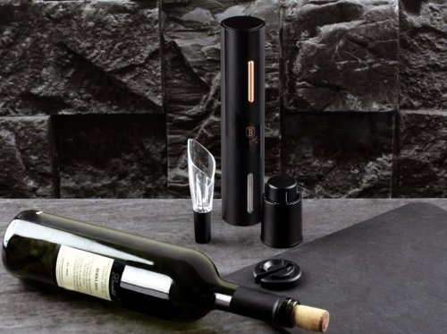 - Obsah sady:- Akumulátorový otvírák na víno, řezačka fólie, nálevka na víno + vakuová zátka na víno- Barva: černo-růžové zlato- Otvírák na víno: - Provoz na 4 ks alkalických "AA" baterií (nejsou součástí …