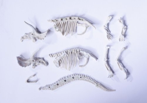 Sada na vykopávání a následné sestavení kostry dinosaura, 3 druhy - Triceratops, T-Rex, Stegosaurus. Součástí je nářadí a 3 fosílie. Velikost 23 cm.