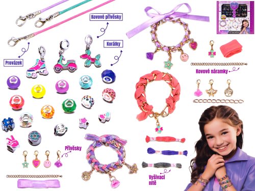 Sada na výrobu náramků 6 ks s kovovými přívěsky