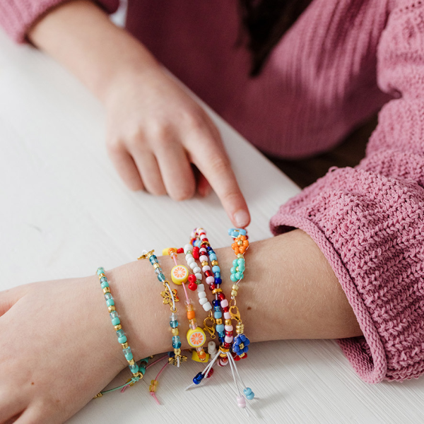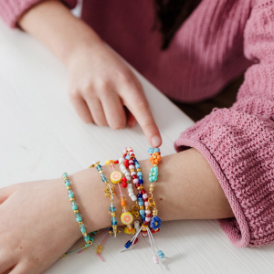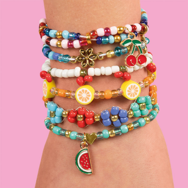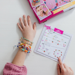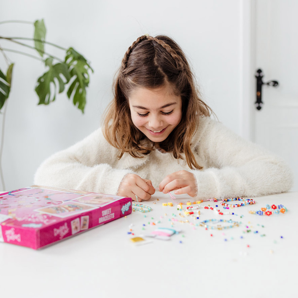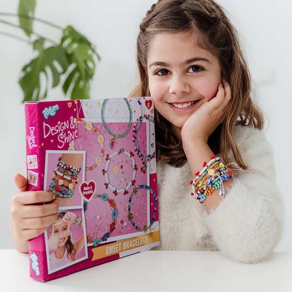 Sada na výrobu náramků sladkých – tato sada je ideální pro rozvoj dětské kreativity a jemné motoriky. Umožňuje dětem vytvořit si vlastní, originální šperky, kterými se mohou pochlubit. Obsahuje – různé druhy korálků -lesklé, třpytivé a barevné, šňůrky/lanka -materiál pro navlékání náramků, přívěsky – speciální ozdobné doplňky pro finální dotvoření.