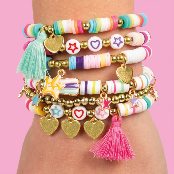 Sada na výrobu náramků štěstí – tato sada je ideální pro rozvoj dětské kreativity a jemné motoriky. Umožňuje dětem vytvořit si vlastní, originální šperky, kterými se mohou pochlubit. Obsahuje – různé druhy korálků -lesklé, třpytivé a barevné, šňůrky/lanka -materiál pro navlékání náramků, přívěsky – speciální ozdobné doplňky pro finální dotvoření.