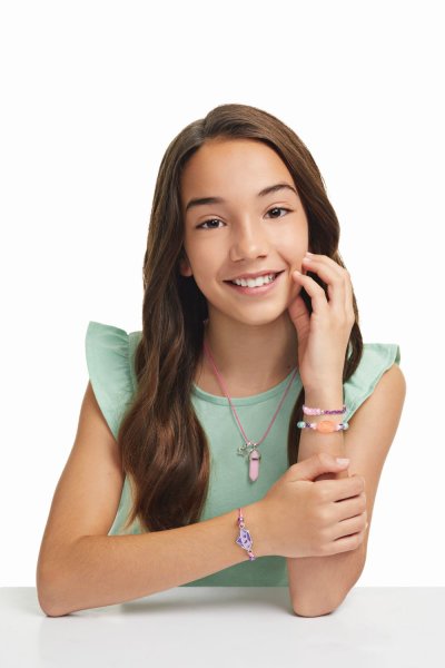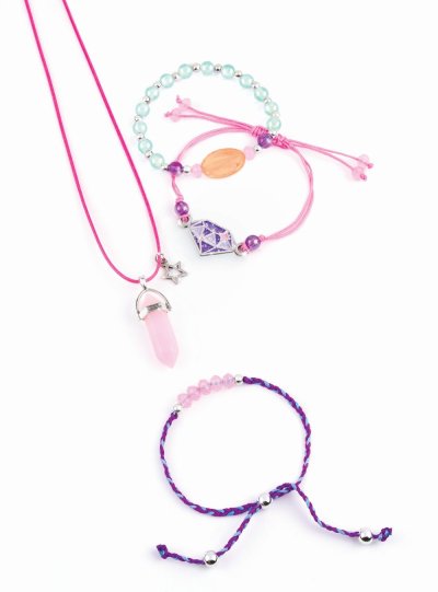 Dobrá nálada je všude kolem nás! V této sadě, která obsahuje komponenty pro výrobu náhrdelníku a 3 náramků, se kombinují korálky ve tvaru křišťálu pro příjemnou atmosféru. Věk od 8+.