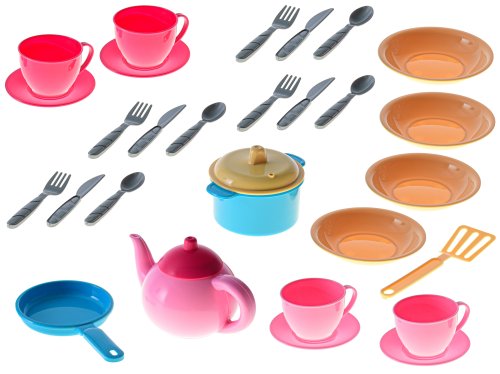 Nevíte si rady s dětmi v kuchyni? Pořiďte jim kuchařské náčiní, ať mohou vařit s vámi. Sada nádobí obsahuje konvici, hrnec, pánev, talíře, příbory, šálky a podšálky. Vhodné pro děti od 3 let.