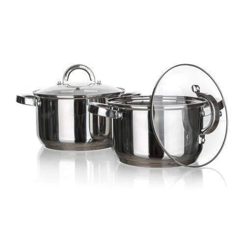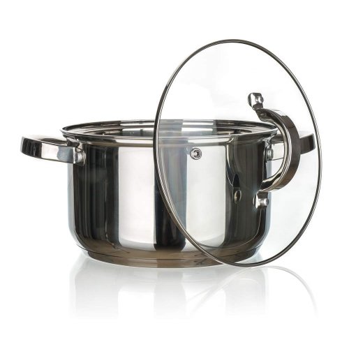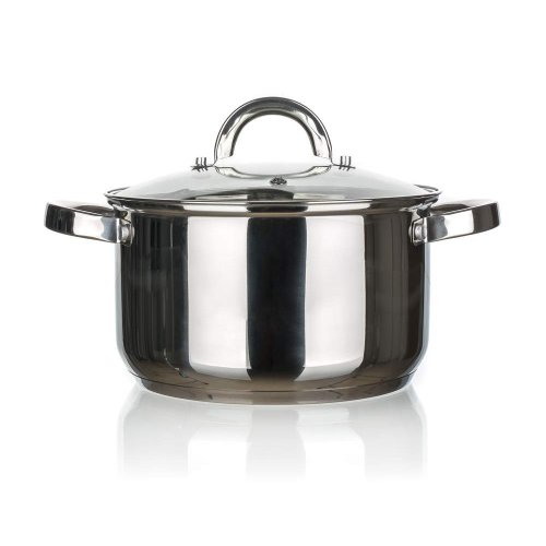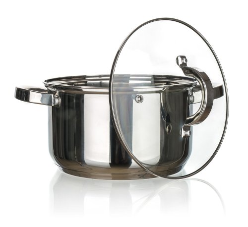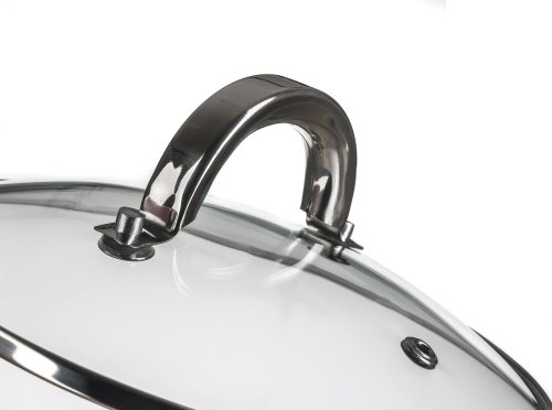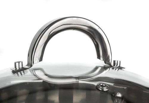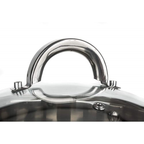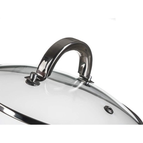 materiál: nerez tloušťka stěny: 0,4 mm tloušťka dna: 2,8 mm materiál držadel: nerez materiál poklice: sklo