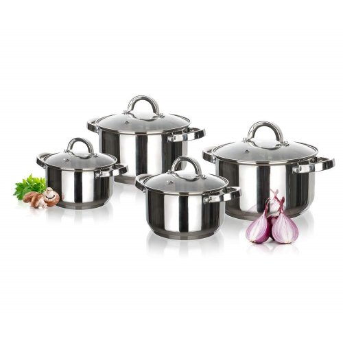 Sada nerezového nádobí SWING. Nádobí lze používat na všechny typy sporáků. Poklice jsou vyrobeny z odolného skla a mají otvor na páru pro dokonalou kontrolu nad vařením. Povrchová uprava nerezi lesk (uvnitř i vně). Nádobí se snadno udržuje, lze mýt v myčce. Držadla jsou k hrncům našroubovaná.