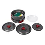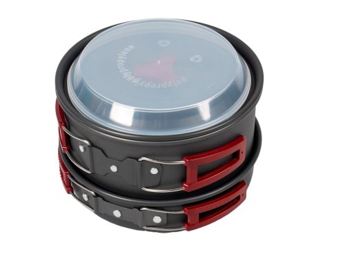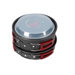 Nádobí je vyrobené z hliníkové slitiny a plastu. Odolá i náročným podmínkám, takže si ho bez obav přibalíte s sebou na cesty. Hliník navíc zajišťuje rovnoměrný ohřev při vaření pokrmu. Díky tvrdému eloxovanému povlaku nádobí snadno očistíte.