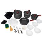 Trávíte rádi čas pod stanem nebo v kempu? Usnadněte si přípravu jídla a pořiďte si ultralehkou a kompaktní sadu nádobí Acra C22. Díky praktickým skládacím rukojetím ušetříte místo ve svém batohu. Pomocí sady připravíte oběd nebo večeři až pro 4 osoby. Hodí se pro turistiku, na kempování i na piknik.