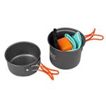 Trávíte rádi čas pod stanem nebo v kempu? Usnadněte si přípravu jídla a pořiďte si ultralehkou a kompaktní sadu nádobí Acra C23. Díky praktickým skládacím rukojetím ušetříte místo ve svém batohu. Pomocí sady připravíte oběd nebo večeři až pro 2 osoby. Hodí se pro turistiku, na kempování i na piknik.