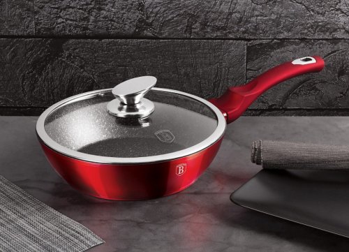 Bohatě vybavená sada nádobí značky Berlingerhaus edice Burgundy Metallic Line se skládá celkem ze 18 kusů nádobí a kuchyňského náčiní. Doménou této sady je 3vrstvý povrch s mramorovým designem charakteristický svou dokonalou nepřilnavostí, žádné potraviny se nepřipalují a díky tomu se kastroly i pánve velice snadno čistí. Zároveň je vhodný pro zdravé vaření s minimem tuku nebo oleje a můžete uspořit až 35 % energie a času oproti obyčejným nerezovým kastrolům.
