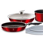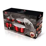 Jedinečná sada nádobí s odnímatelnou rukojetí z červené kolekce Burgundy Metallic Line. Doménou této sady je praktická Click rukojeť, díky které můžete celou sadu použít v troubě i na sporáku. Všechny nádoby jsou stohovatelné do sebe a tak vám celá sada nádobí v kuchyni zaberou pouze jednu poličku. Odnímatelná rukojeť je kompatibilní se všemi kusy nádobí. Je ergonomicky tvarovaná a pohodlně se drží. Její odejmutí a následné připnutí jedním pohybem trvá sotva vteřinu. Klidně můžete na sporáku vařit ve všech nádobách a libovolně mezi nimi rukojeť přepínat. Součástí sady jsou dvě skleněné poklice a také dvě skladovací víka, která nádoby spolehlivě uzavřou, když v nich budou například hotové pokrmy.