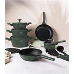 Sada nádobí Berlingerhaus Matte Green Collection s titanovým povrchem přináší eleganci a maximální efektivitu při každodenním vaření. Moderní matně zelené provedení v kombinaci s kvalitním zpracováním potěší každého, kdo chce spojit funkčnost, styl a ohleduplnost k přírodě.