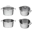 Obrovskou výhodou oproti běžně používaným hrncům jsou výparníky/cedníky, kterými jsme osadili všechny poklice v sadě. Už si nepopálíte ruce při slévání horké vody z brambor či těstovin. Pro rychlejší uvedení surovin k varu jen pootočíte poklicí a výparník/cedník se uzavře.