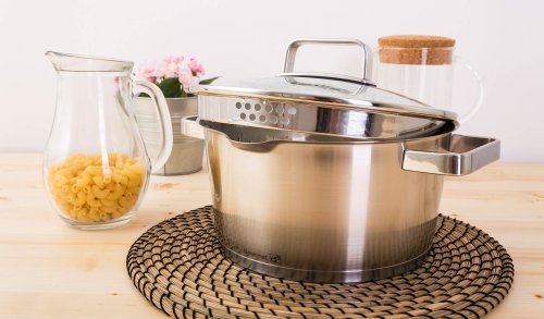 Obrovskou výhodou oproti běžně používaným hrncům jsou výparníky/cedníky, kterými jsme osadili všechny poklice v sadě. Už si nepopálíte ruce při slévání horké vody z brambor či těstovin. Pro rychlejší uvedení surovin k varu jen pootočíte poklicí a výparník/cedník se uzavře.
