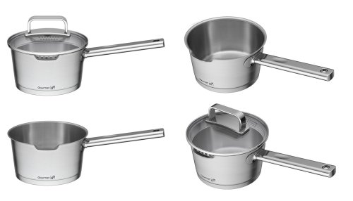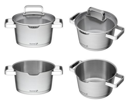 Kvalitní sendvičová dna bez vzduchových kapes o tloušťce 5,7 mm u hrnců do průměru 16-24 cm a 4,2 mm u pánve o průměru 24 cm. Silné stěny o tloušťce 0,7 mm velmi efektivně a rovnoměrně rozvádějí teplo. Neuvěřitelně vysoká odolnost proti poškození a korozi. Hrnce zvládají teploty do 350 °C, poklice do teploty 180 °C. Hrnce jsou vhodné na všechny typy sporáků - na indukci, plyn i varnou desku. Designově čisté linie a dokonalý tvar jsou ozdobou každé kuchyně.