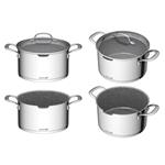 Celonerezová sada nádobí G21 Gourmet Miracle je ze speciální potravinářské oceli 18/10 CrNis s vnitřním nepřilnavým povrchem GREBLON® C3+ s vysokou tvrdostí a odolností. Všechny hrnce i pánve mají silná sendvičová dna pro dokonale rovnoměrné rozvádění tepla a jsou vhodné pro každý typ ohřevu. Díky svým jedinečným vlastnostem a dokonalému provedení je greblonové nádobí v nadčasovém designu velmi oblíbené a vydrží dlouhé roky.
