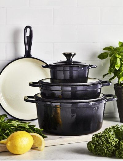 Hledáte vhodnou sadu nádobí do vaší kuchyně? Sadou získáte všechny potřebné nádoby na vaření, ať už budete vařit pro sebe nebo pro více osob. Velkou výhodou je, že můžete objednat najednou více nádobí od ověřeného výrobce CS SOLINGEN. Sadu nádobí sjednocuje jednotný design, navíc černá barva celé sady je univerzální a vyjímat se bude v každé kuchyni.