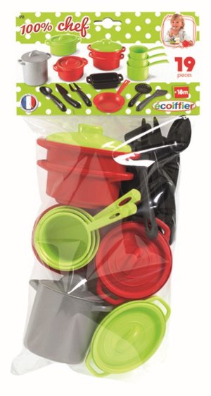 Sada nádobí na vaření obsahuje hrnce s pokličkami, rendlíky, zapékací nádobu, pánvičku a kuchyňské náčiní.