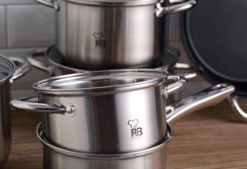 - materiál: nerezová ocel- vícevrstvé sendvičové dno pro efektivní vaření- skleněné poklice s madlem z nerezové oceli- celonerezové jsou také postranní rukojeti- všechny úchyty jsou spojeny pevným nýtem, …