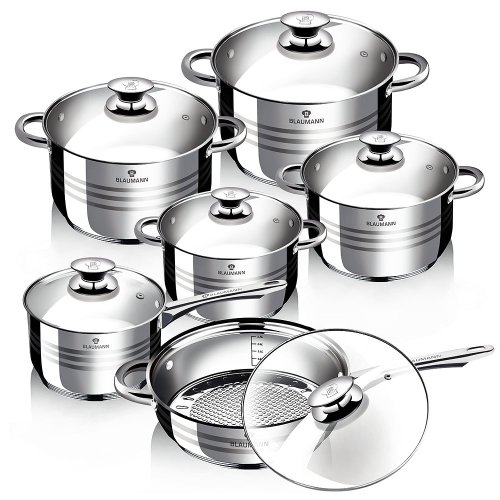 Hledáte vhodnou sadu nádobí do vaší kuchyně? Sadou získáte všechny potřebné nádoby na vaření, ať už budete vařit pro sebe nebo pro více osob. Velkou výhodou je, že můžete objednat najednou více nádobí od ověřeného výrobce BLAUMANN. Sadu nádobí sjednocuje jednotný design, navíc nerezová barva celé sady je univerzální a vyjímat se bude v každé kuchyni.