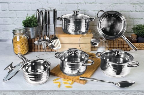 Hledáte vhodnou sadu nádobí do vaší kuchyně? Sadou získáte všechny potřebné nádoby na vaření, ať už budete vařit pro sebe nebo pro více osob. Velkou výhodou je, že můžete objednat najednou více nádobí od ověřeného výrobce BLAUMANN. Sadu nádobí sjednocuje jednotný design, navíc nerezová barva celé sady je univerzální a vyjímat se bude v každé kuchyni.