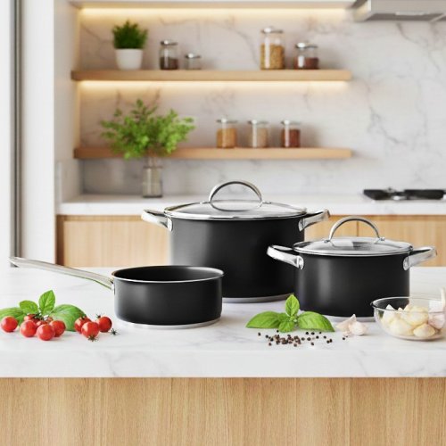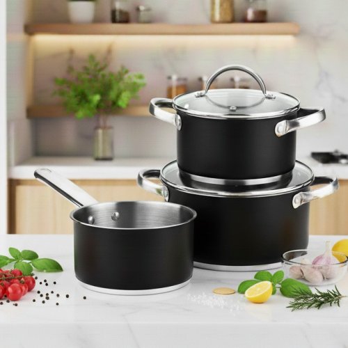 •Nádobí skládající se ze 2 kastrolů, 2 poklic a rendlíku: kastrol 16 cm s objemem 1,3L + kastrol 20 cm s objemem 2,8L a kastrol 24 cm s objemem 4,5L.•Vyrobeno ze silné nerezová ocel pro rychlou distribuci tepla. Pevný a odolný materiál.•Toto nádobí obsahuje 2 poklice z čirého skla pro každý kastrol a má otvor pro výstup páry. •Vhodné pro všechny typy sporáků: indukční, halogenové, elektrické, plynové a sklokeramické.•Doporučujeme je mýt ručně.Velmi kompletní a moderní nádobí. Skládá se z 16 cm kastrolu, 20 cm kastrolu a 24 cm kastrolu. Rychlá distribuce tepla díky nerezové oceli vám umožní získat to nejlepší nádobí a ušetřit čas. Součástí jsou 2 průhledné skleněné poklice, pomocí kterých můžete bezpečně ovládat okamžité vaření. Toto nádherné nádobí si můžete vychutnat v každém z různých typů sporáků, které existují na trhu: indukční, halogenové, elektrické, plynové a sklokeramické. Doporučuje se ruční mytí.