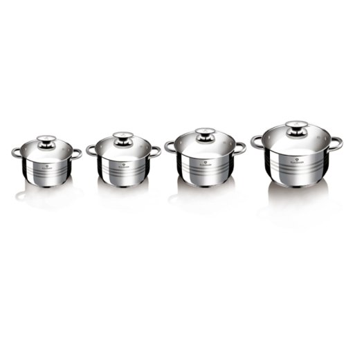 Materiál: nerezová ocel<BR>- Sada obsahuje:<BR>- Kastrol s poklicí pr. 169,5 cm 1,9 l<BR>- Kastrol s poklicí pr. 1810,5 cm 2,6 l<BR>- Kastrol s poklicí pr. 2011,5 cm 3,6 l<BR>- Kastrol s poklicí pr. 2413,5 cm 6,1 L<BR>- Ergonomická rukojeť umožňuje dokonalé uchopení<BR>- Energeticky úsporné hliníkové kapslové dno podporuje rychlý a rovnoměrný ohřev<BR>- Vhodné na všechny typy sporáků včetně indukčních<BR>- Lze mýt v myčce nádobí<BR>- Rukojeti a úchopy z nerezové oceli.