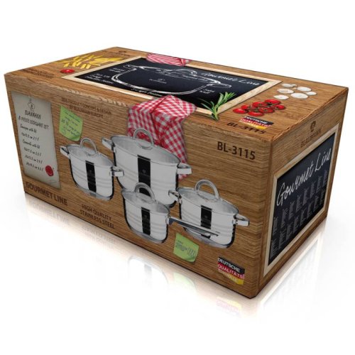 Hledáte vhodnou sadu nádobí do vaší kuchyně? Sadou získáte všechny potřebné nádoby na vaření, ať už budete vařit pro sebe nebo pro více osob. Velkou výhodou je, že můžete objednat najednou více nádobí od ověřeného výrobce BLAUMANN. Sadu nádobí sjednocuje jednotný design, navíc nerezová barva celé sady je univerzální a vyjímat se bude v každé kuchyni.