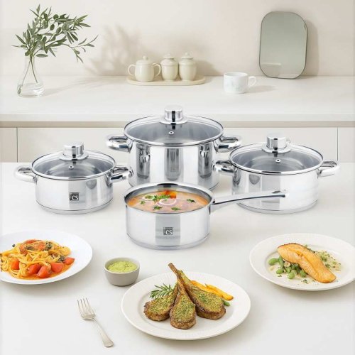 materiál: ušlechtilá nerezová ocel 18/10- kvalitní sendvičové dno pro rychlé a úsporné vaření- nerezové rukojeti se nezahřívají, zůstávají vždy chladné- žáruvzdorné poklice s nerezovou rukojetí- odlévací okraje pro snadné a čisté přelévání bez kapek- vhodné na všechny druhy sporáků včetně indukce- vhodné do trouby- vhodné do myčky nádobí- sada 7 ks obsahuje:- rendlík 16 x 7,5 cm / 1,3 l- kastrol s poklicí 16 x 7,5 cm / 1,3 l- kastrol s poklicí 18 x 8,5 cm / 1,9 l- kastrol s poklicí 20 x 11,5 cm / 3,2 l