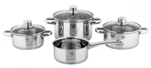 • materiál: ušlechtilá nerezová ocel 18/10- kvalitní sendvičové dno pro rychlé a úsporné vaření- nerezové rukojeti se nezahřívají, zůstávají vždy chladné- žáruvzdorné poklice s nerezovou rukojetí- odlévací okraje pro snadné a čisté přelévání bez kapek- vhodné na všechny druhy sporáků včetně indukce- vhodné do trouby- vhodné do myčky nádobí- sada 7 ks obsahuje:- rendlík 16 x 7,5 cm / 1,3 l- kastrol s poklicí 16 x 7,5 cm / 1,3 l- kastrol s poklicí 18 x 8,5 cm / 1,9 l- kastrol s poklicí 20 x 11,5 cm / 3,2 l