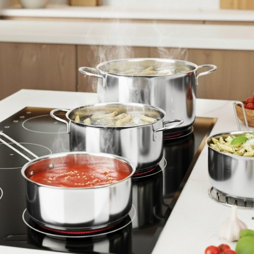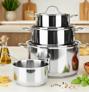 • materiál: nerezová ocel- rovnoměrný rozvod tepla po celém dnu i stěnách kastrolu- skvělé vlastnosti pro vaření, dušení i smažení- profi provedení navrženo pro vysokou funkčnost v kuchyni- robustní a vysoce odolné zpracování- promyšlené odlévací okraje pro pohodlné přelévání obsahu bez ukápnutí- z vnější strany upevněné nerezové rukojeti, žádné šroubky ani spoje uvnitř hrnce- rukojeti se nemohou uvolnit a nezatéká do nich voda, navíc se při vaření nezahřívají- odměrná stupnice v každém hrnci- jednoduché čištění, vhodné do myčky nádobí- vhodné na všechny druhy sporáků i na indukci- vhodné do trouby do teploty 220°C- kompletní sada 7 ks obsahuje:- rendlík 17 x 8 cm / 1,3 litru- kastrol s poklicí 17 x 10 cm / 1,5 litru- kastrol s poklicí 19 x 10 cm / 2 litry- hrnec s poklicí 21 x 10 cm / 3 litry