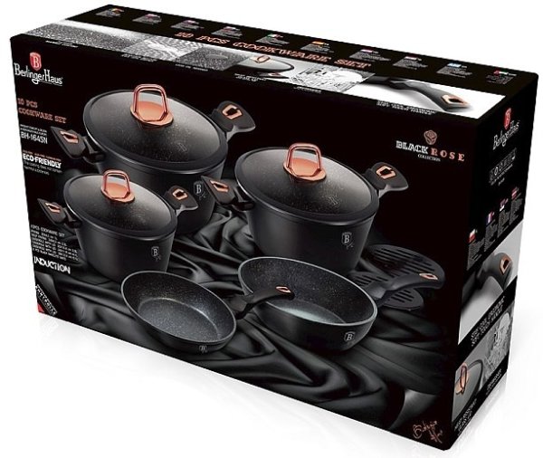 Hledáte vhodnou sadu nádobí do vaší kuchyně? Sadou získáte všechny potřebné nádoby na vaření, ať už budete vařit pro sebe nebo pro více osob. Velkou výhodou je, že můžete objednat najednou více nádobí od ověřeného výrobce BERLINGERHAUS. Sadu nádobí sjednocuje jednotný design, navíc černá/zlatá barva celé sady je univerzální a vyjímat se bude v každé kuchyni.