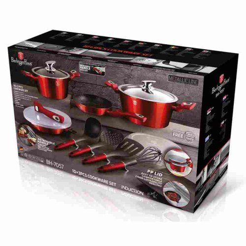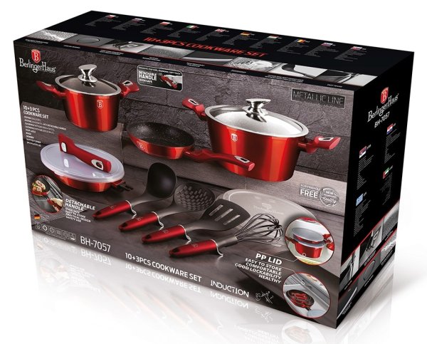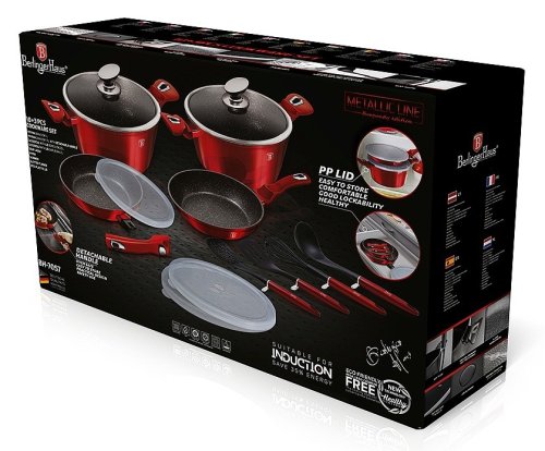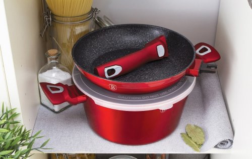 Hledáte vhodnou sadu nádobí do vaší kuchyně? Sadou získáte všechny potřebné nádoby na vaření, ať už budete vařit pro sebe nebo pro více osob. Velkou výhodou je, že můžete objednat najednou více nádobí od ověřeného výrobce BERLINGERHAUS. Sadu nádobí sjednocuje jednotný design, navíc červená barva celé sady je univerzální a vyjímat se bude v každé kuchyni.