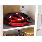 Bohatě vybavená sada nádobí z metalické burgundy kolekce zaujme nejen nepřehlédnutelným moderním designem, ale především svými jedinečnými vlastnostmi. V sadě jsou navíc 3 praktická víčka, kterými lze nádoby uzavřít. Větší pánev má odnímatelnou rukojeť a lze ji tak používat pro zapékání v troubě až do 220°C, navíc šetří místo při skladování.